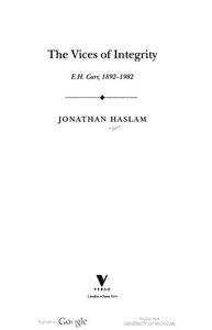 The Vices of Integrity E.H. Carr 1892 - 1982