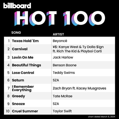 Billboard Hot 100 Singles Chart (09.03.2024)