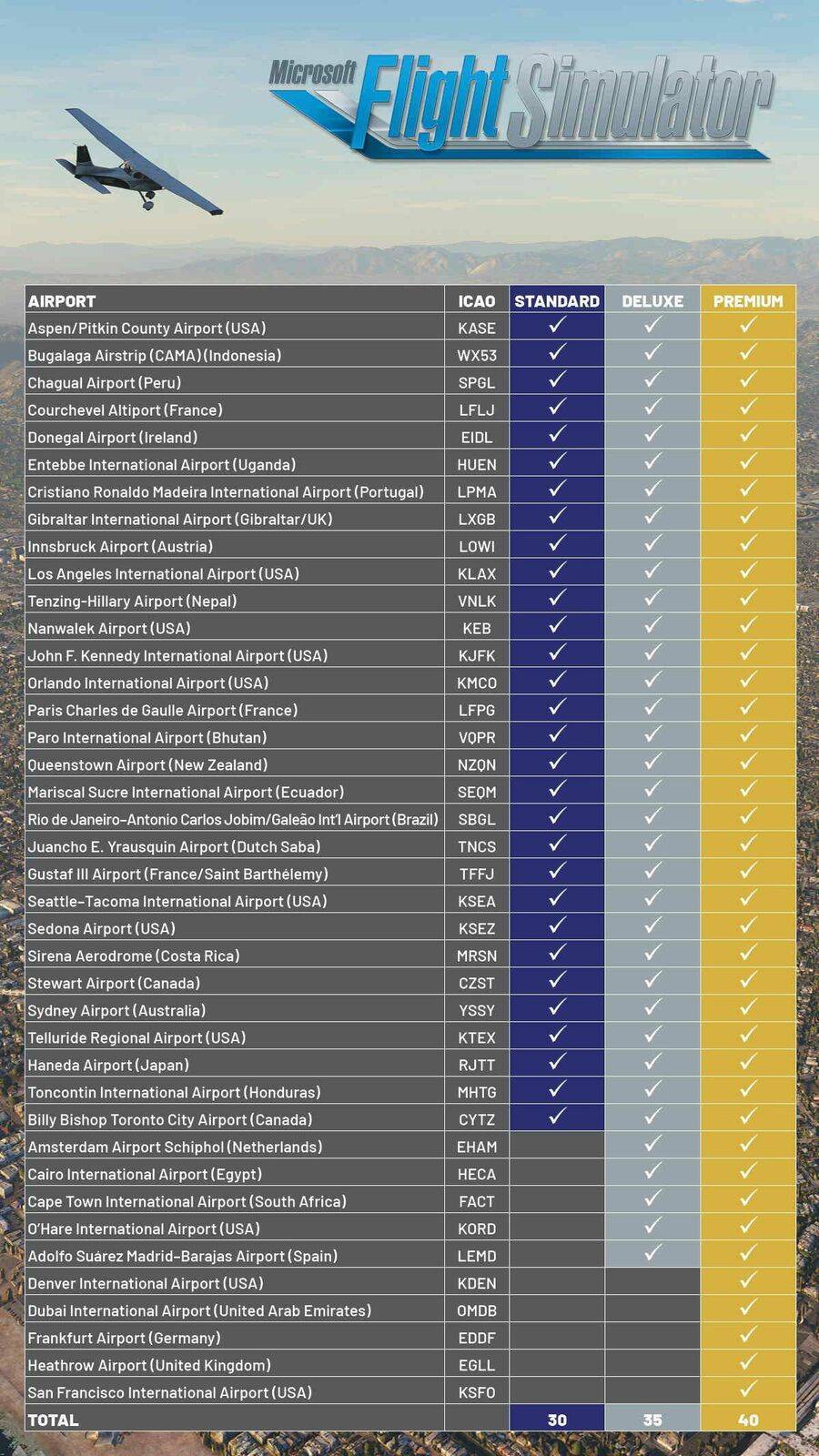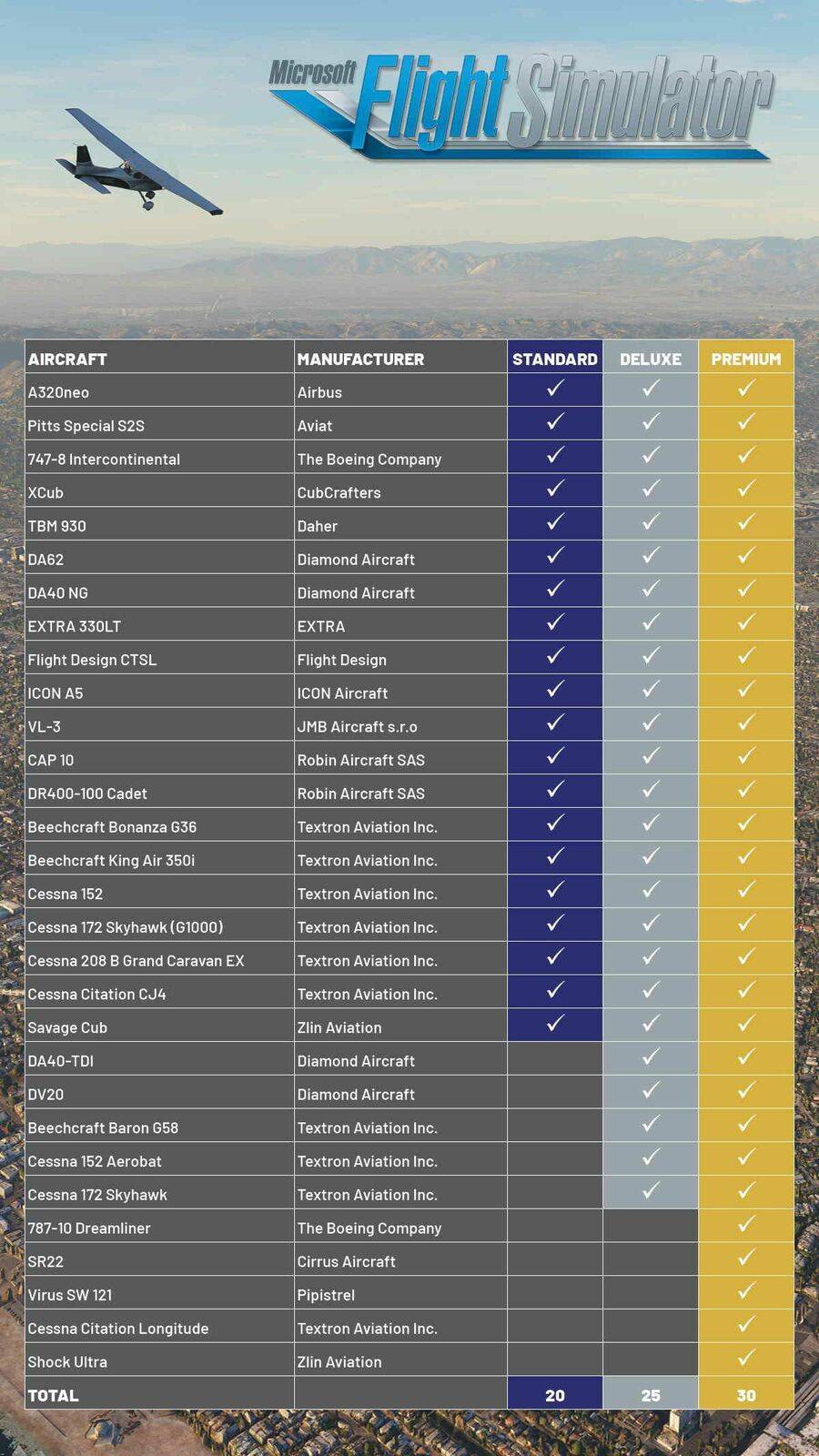 Erstellen Sie Flugpläne für jeden Ort der Erde. Der Microsoft Flight Simulator umfasst 20 detailreiche Flugzeuge mit einzigartigen Flugmodellen und 30 von Hand erstellte Flugplätze und -häfen.